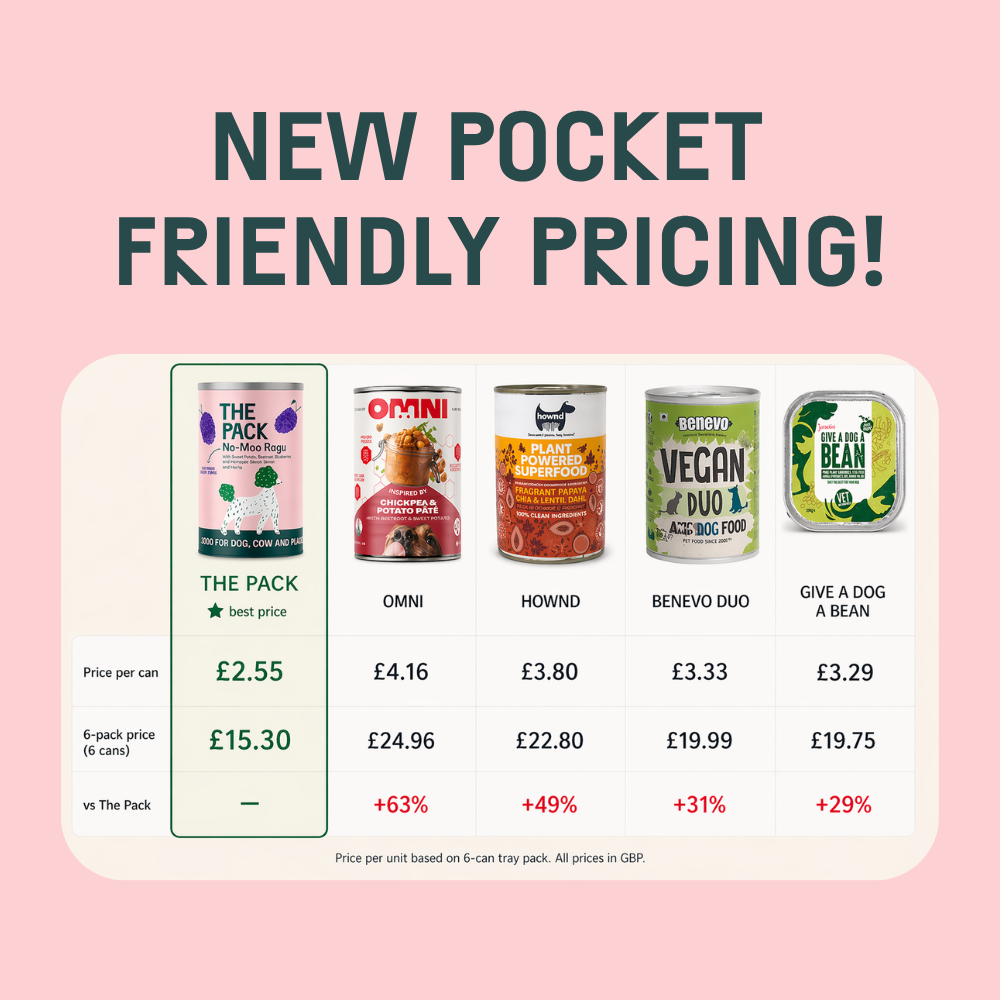 Your dog's health is our top priority, and as the science shows, vegan dog food is not only great for your dog but our planet too. Our meals will help reduce your environmental pawprint by up to 17.6x less CO2e per can than a meat-based meal.